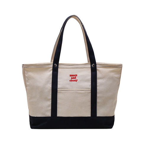 Alta gama 12oz lona algodón personalizar gran mamá mujeres impermeable playa regalo compras bolso blanco y negro con cinta de algodón