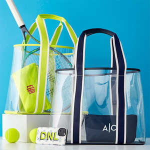 Bolso de mano transparente de sarga a rayas a la moda personalizado al por mayor, conjunto de bolso de compras de playa transparente de PVC de hombro para mujer