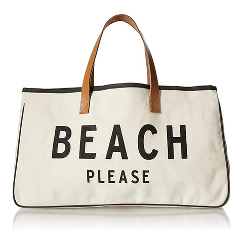 Hold Everything Collection Bolso de playa de lona de algodón de lujo de verano 100% en blanco y negro con asas de cuero genuino