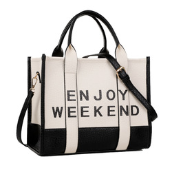 Bolso de mano cuadrado grande con letras impresas personalizadas de alta calidad para mujer, bolso de mano de cuero PU, correas, bandolera de compras