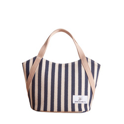 Bolso de compras de lona de algodón natural con rayas negras pequeñas personalizadas, bolso de compras de lujo para niñas, bolsos de mano de lona con cremallera para damas